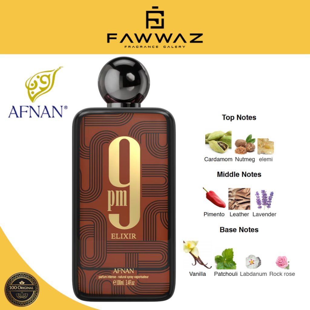 Dengan daya tahan luar biasa, Afnan 9 PM Elixir cocok digunakan untuk aktivitas harian maupun malam hari, memberikan kesan elegan dan menggoda di setiap kesempatan.