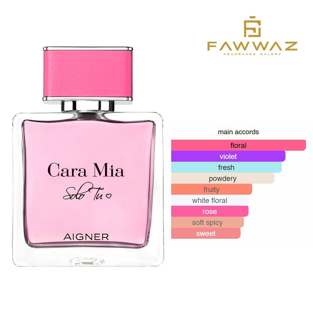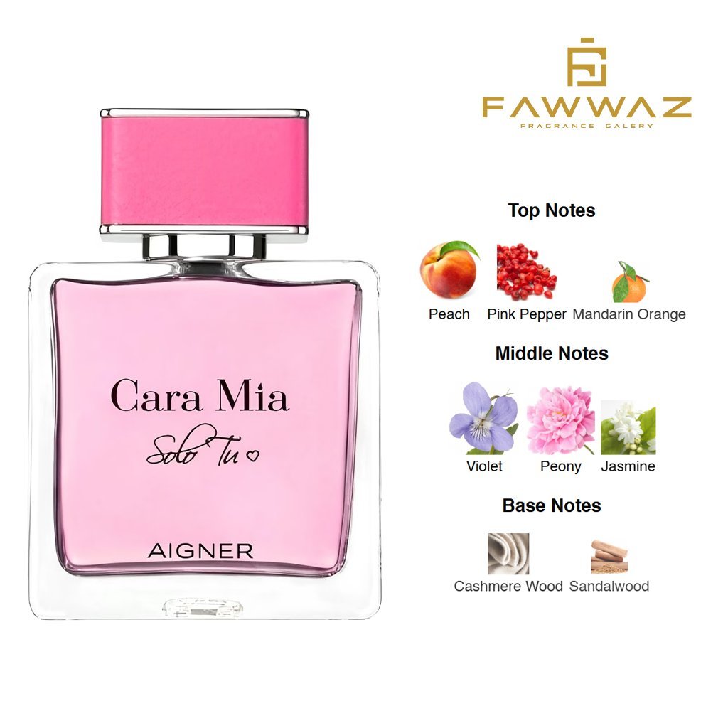 Aigner Caramia Solo Tu Eau De Parfum 100ML Woman adalah parfum wanita dengan aroma floral-fruity elegan yang manis, segar, dan penuh keanggunan. Nama Solo Tu berarti “Hanya Kamu” dalam bahasa Italia, menggambarkan wangi yang romantis dan personal.