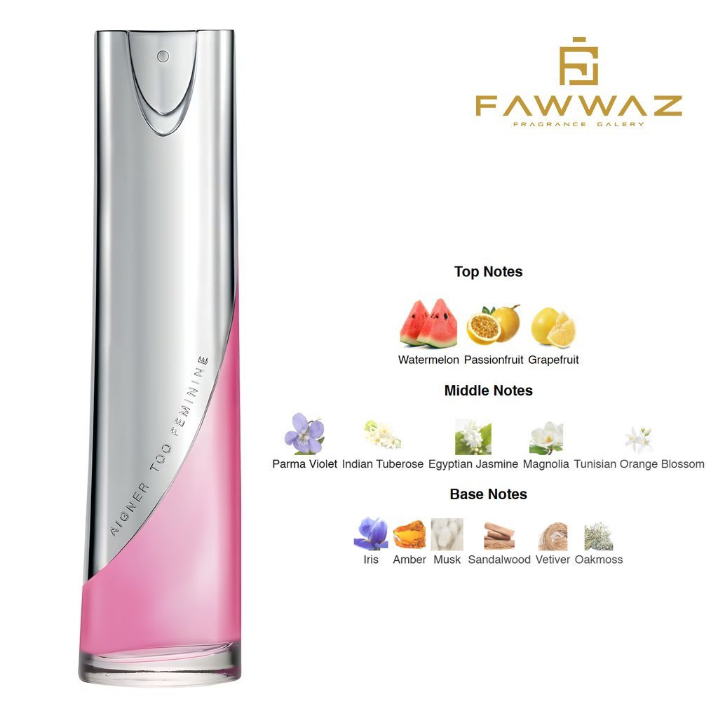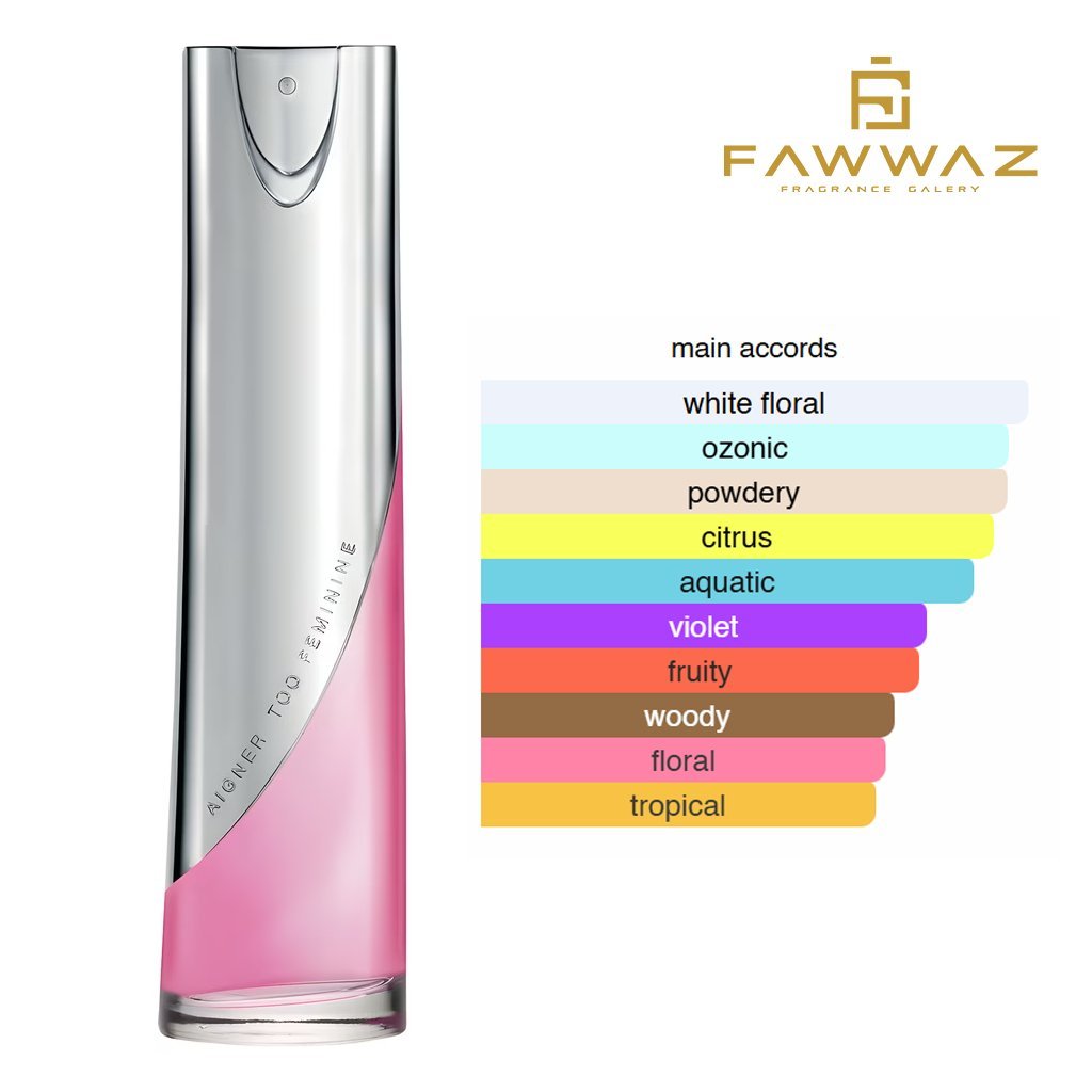 Aigner Too Feminine Eau De Parfum 100ML Woman adalah parfum wanita dengan aroma floral-fruity yang segar, manis, dan penuh pesona. Diciptakan untuk wanita modern yang ingin tampil anggun, romantis, sekaligus percaya diri.
