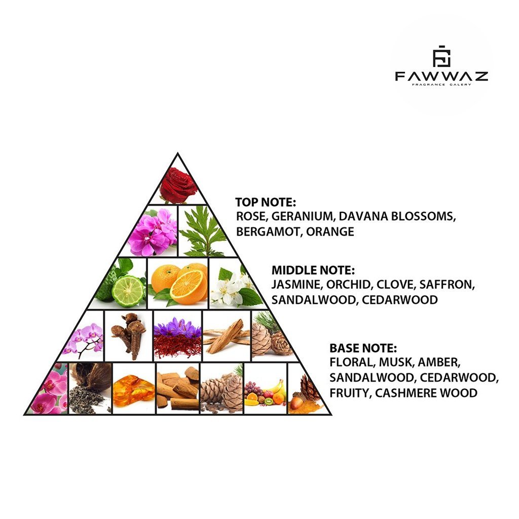 Aroma yang tenang dan elegan, menggabungkan nuansa floral, oriental, dan woody.