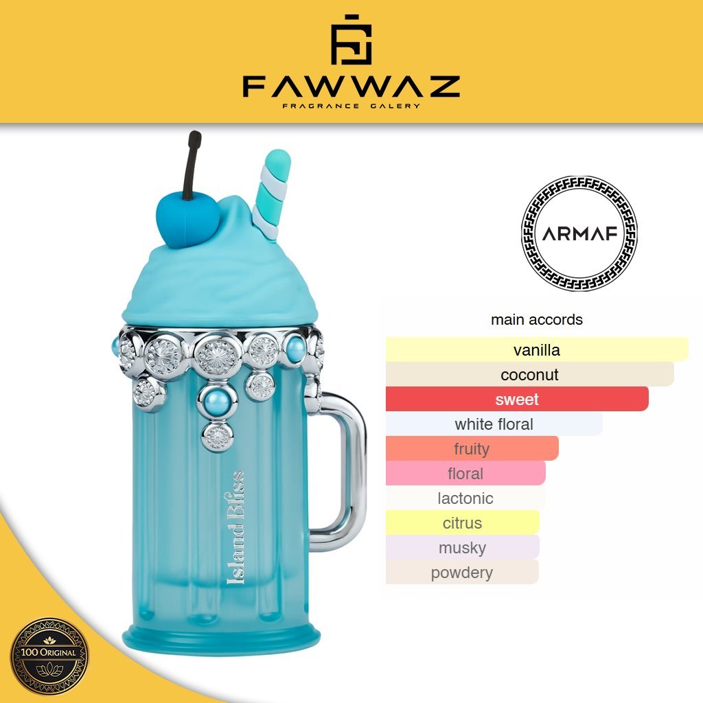 Armaf Island Bliss EDP 100ml adalah parfum wanita dengan aroma segar, ceria, dan elegan yang terinspirasi dari keindahan tropis. Perpaduan fruity, floral, dan musky menciptakan wangi yang ringan sekaligus tahan lama, cocok untuk wanita modern yang ingin tampil percaya diri dan feminin sepanjang hari.