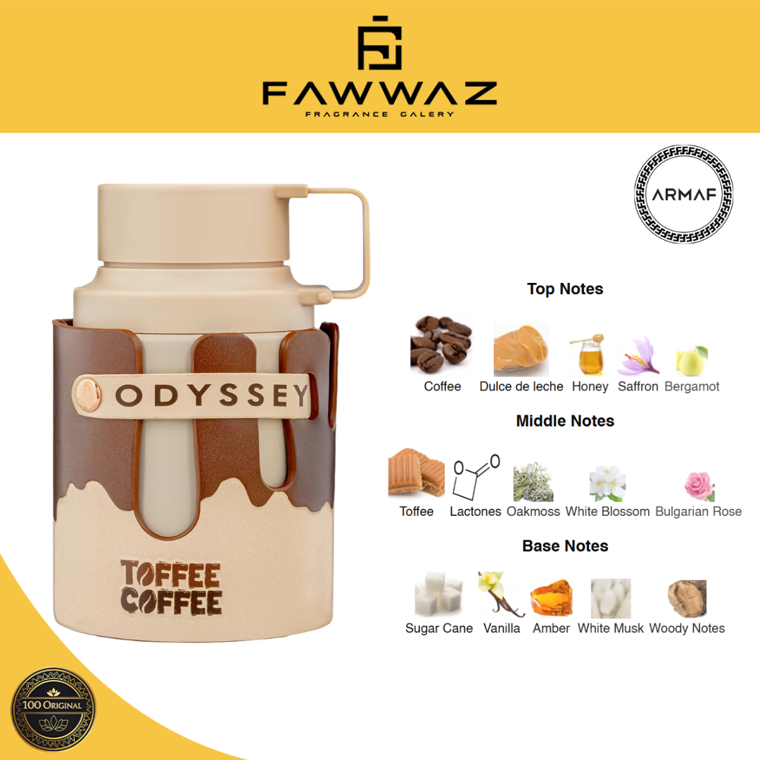 Armaf Odyssey Toffee Coffee menghadirkan aroma kopi hangat berpadu manisnya toffee & vanilla, menciptakan kesan elegan, cozy, dan sangat maskulin.