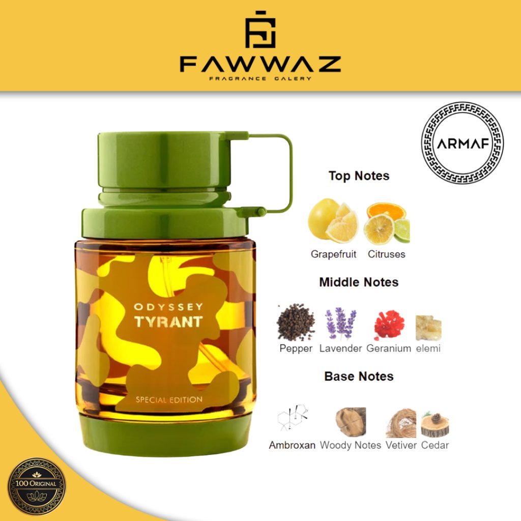 Aromanya dibuka dengan fresh citrus dan spicy notes yang memberi energi dan kesan segar. Di fase tengah, hadir aroma lavender, amber, dan aromatic notes yang membuat parfumnya terasa elegan namun tetap modern. Di akhir, wangi woody, musk, dan warm amber memberikan kesan hangat, kuat, dan tahan lama.