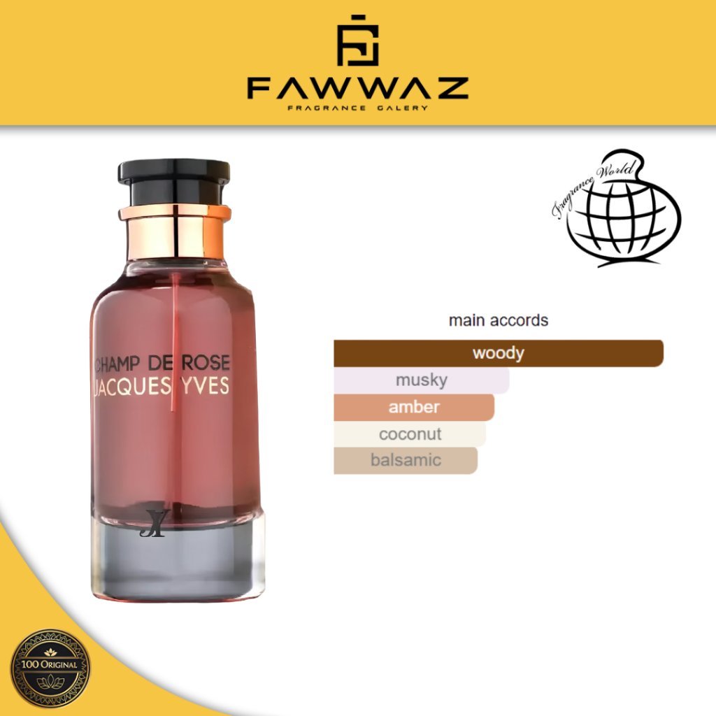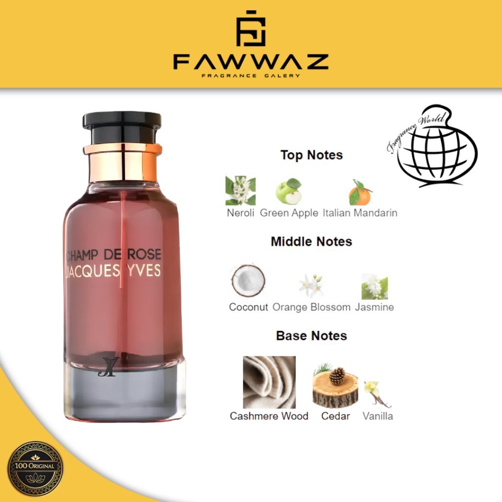 Champ De Rose Jacques Yves Eau de Parfum menghadirkan aroma feminim yang lembut, segar, dan elegan. Perpaduan buah-buahan manis, bunga mawar yang mekar, serta sentuhan musk dan kayu membuat parfum ini terasa modern, romantis, dan cocok dipakai sepanjang hari.