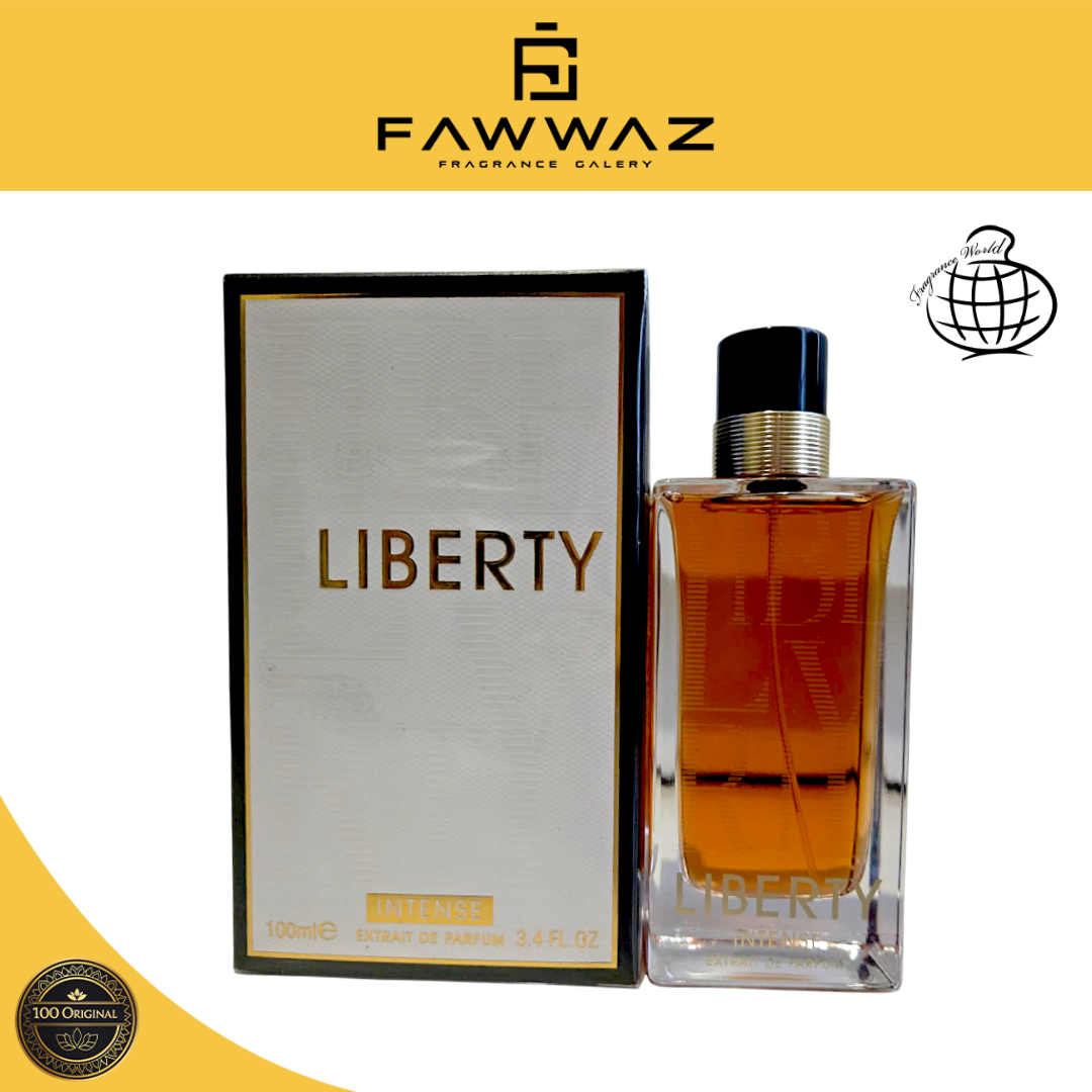 Fragrance World Liberty Intense Extrait de Parfum adalah parfum pria dengan karakter aromatik, maskulin, dan mewah. Dirancang untuk pria yang ingin tampil berwibawa, kuat, dan penuh percaya diri, parfum ini menawarkan aroma yang intens dan tahan lama sepanjang hari.