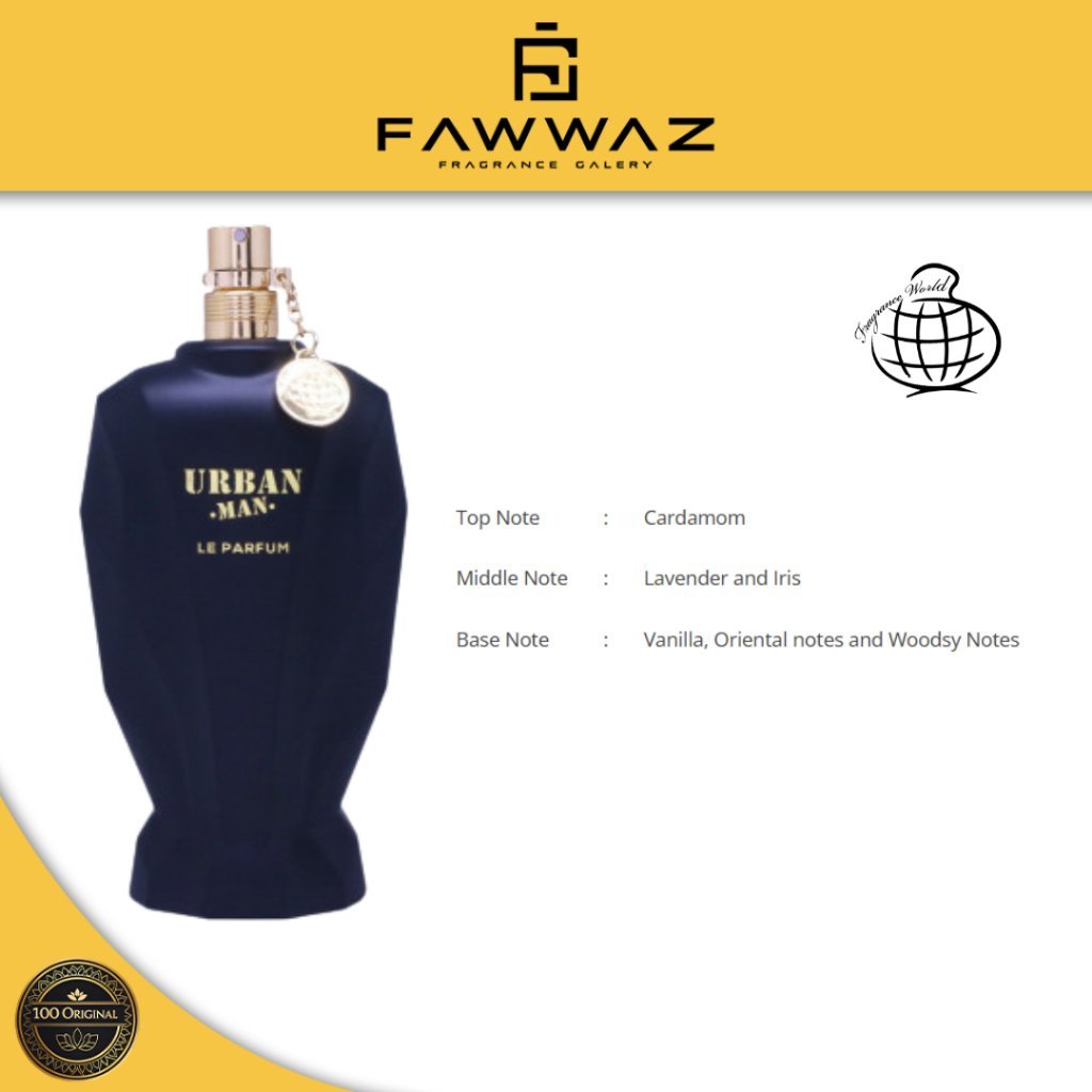 Urban Man Le Parfum adalah parfum pria yang elegan dan modern, dirancang untuk pria perkotaan yang percaya diri. Aroma yang hangat dan maskulin ini menggabungkan rempah segar, nuansa floral, serta dasar vanila dan kayu, menciptakan wangi yang kuat, berkarakter, dan tahan lama.
