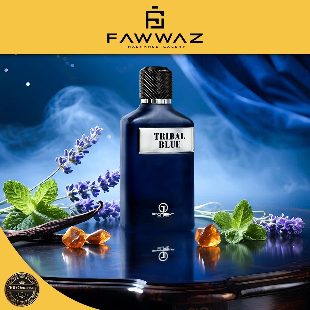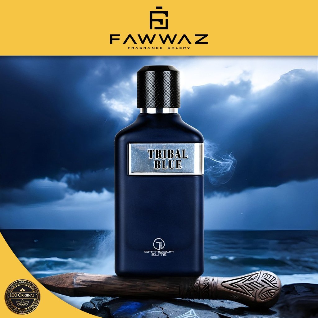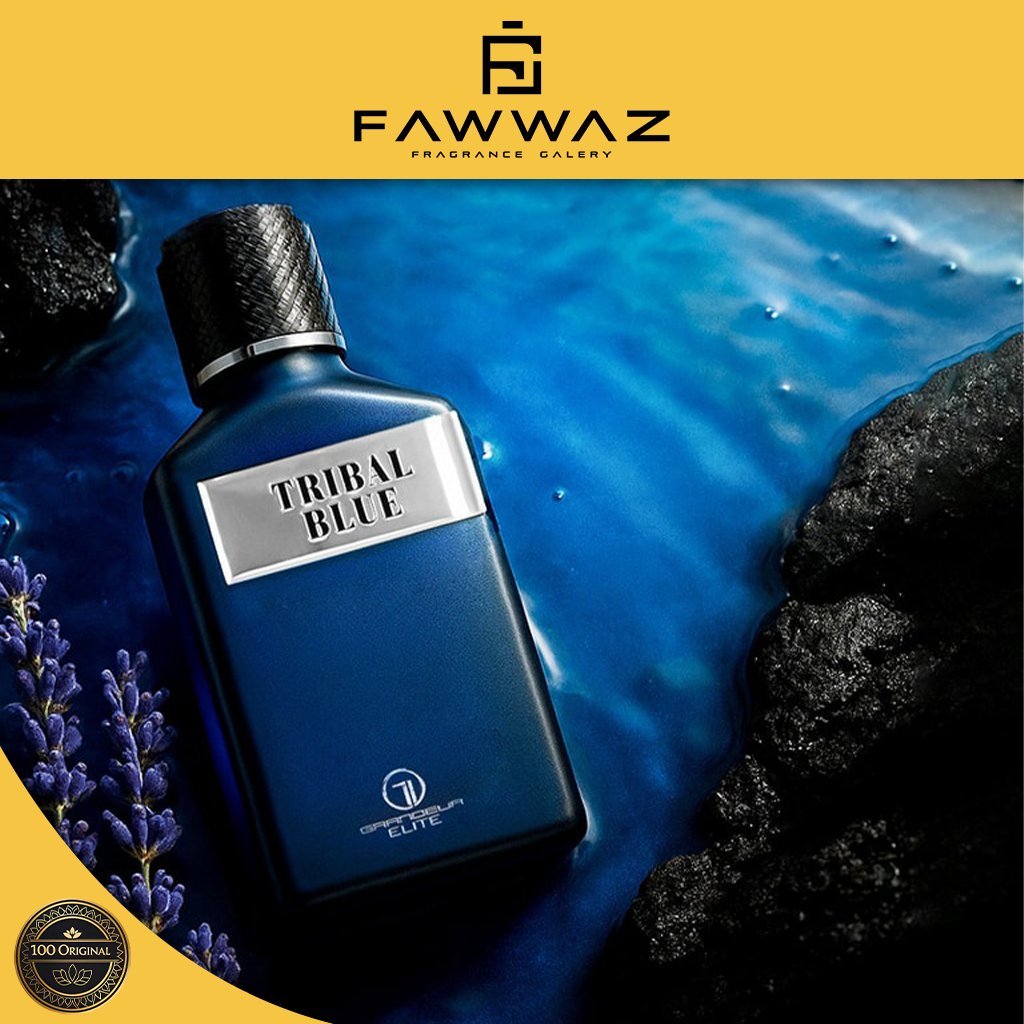 Kekuatan dan ketenangan berpadu dalam aroma Grandeur Tribal Blue (Elite) — parfum pria dengan karakter fresh, woody, dan maskulin elegan.