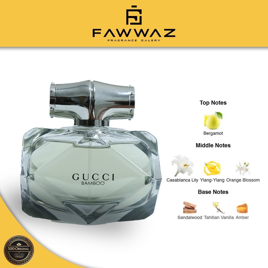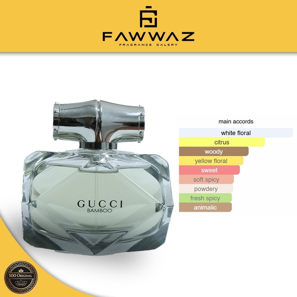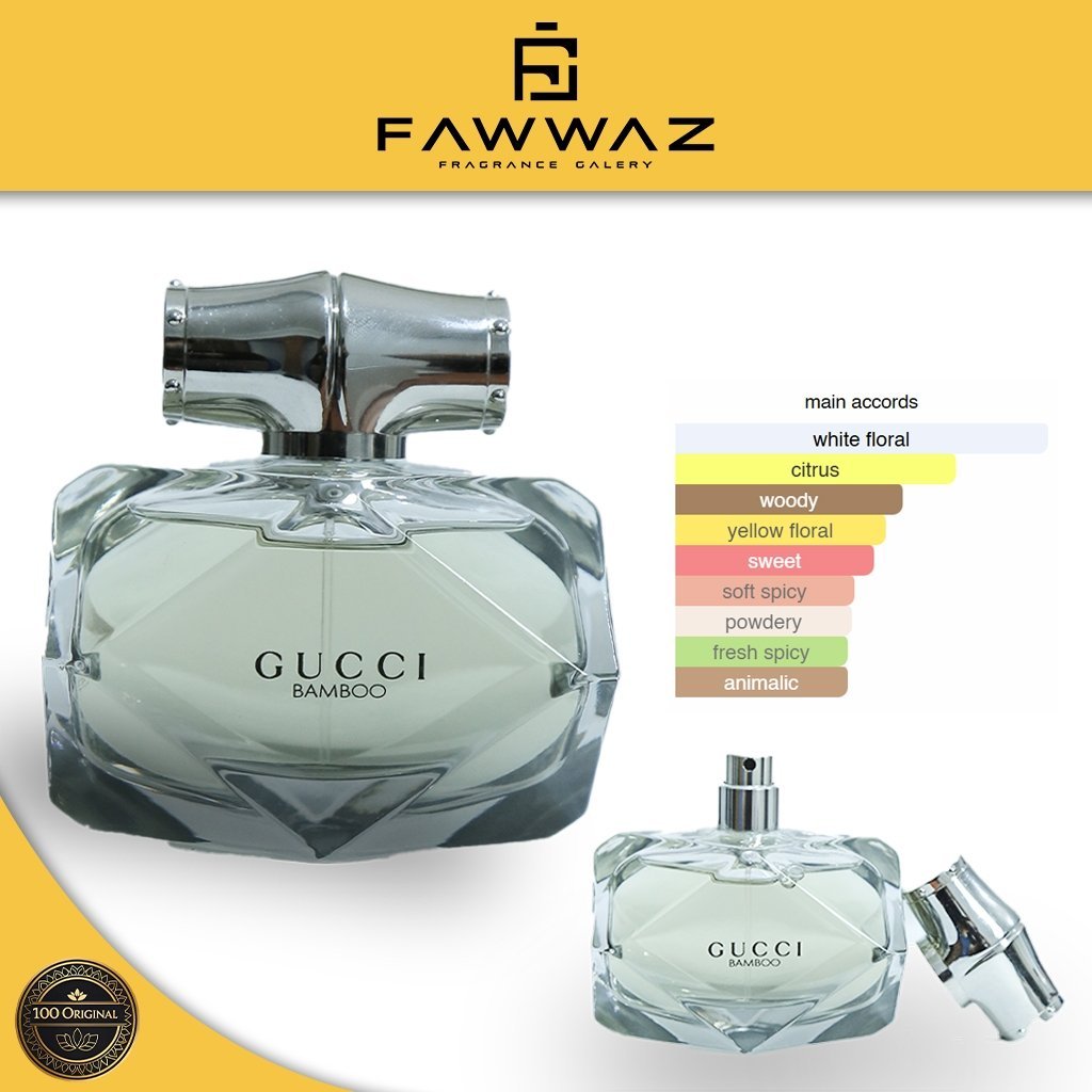 Gucci Bamboo Eau de Parfum 75ml adalah parfum wanita original yang menghadirkan aroma feminin, elegan, dan penuh percaya diri. Terinspirasi dari kekuatan wanita modern, parfum ini memadukan aroma floral yang lembut, sentuhan oriental hangat, dan nuansa kayu mewah yang tahan lama.