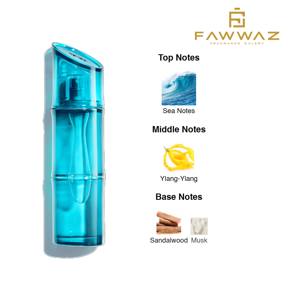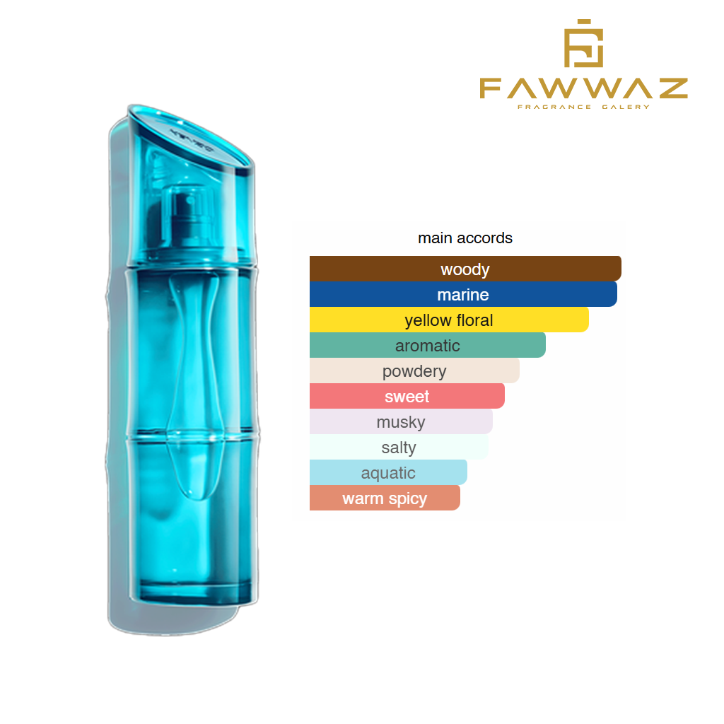 Aroma dibuka dengan nuansa segar dan berair yang kuat, menghadirkan kesan pertama seperti hembusan angin laut yang murni dan menyegarkan. Pada fase tengah, aroma tetap terasa bersih dan ringan dengan sentuhan citrus serta aromatic subtle yang menambah karakter maskulin yang halus. Di bagian akhir, parfum mengendap menjadi wangi woody-musky yang lembut, memberikan daya tahan yang nyaman serta kesan maskulin yang natural di kulit.