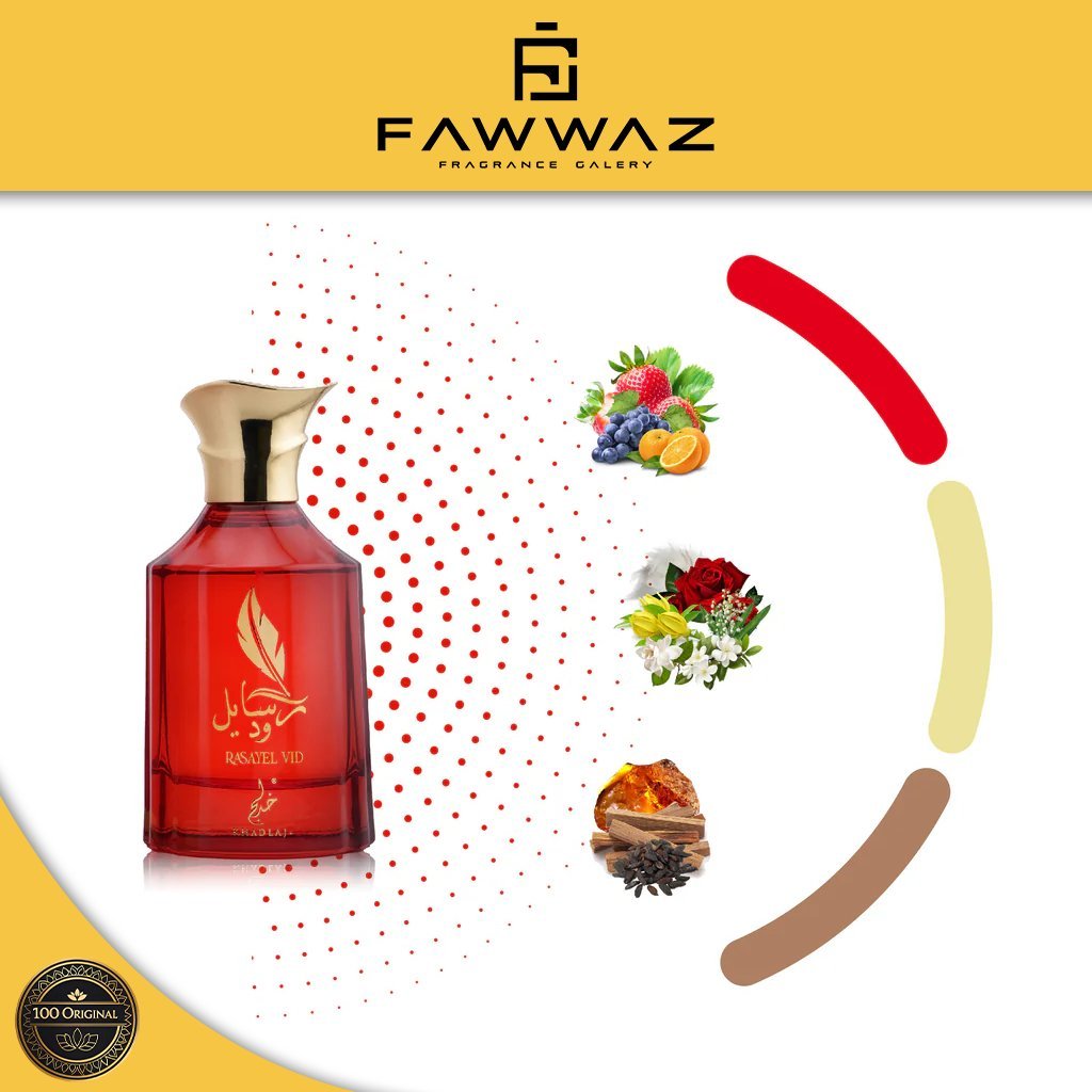 Sebuah parfum mewah dan eksklusif dari rumah parfum Khadlaj, Rasayel VID menggambarkan keanggunan dan kekuatan dalam satu aroma.