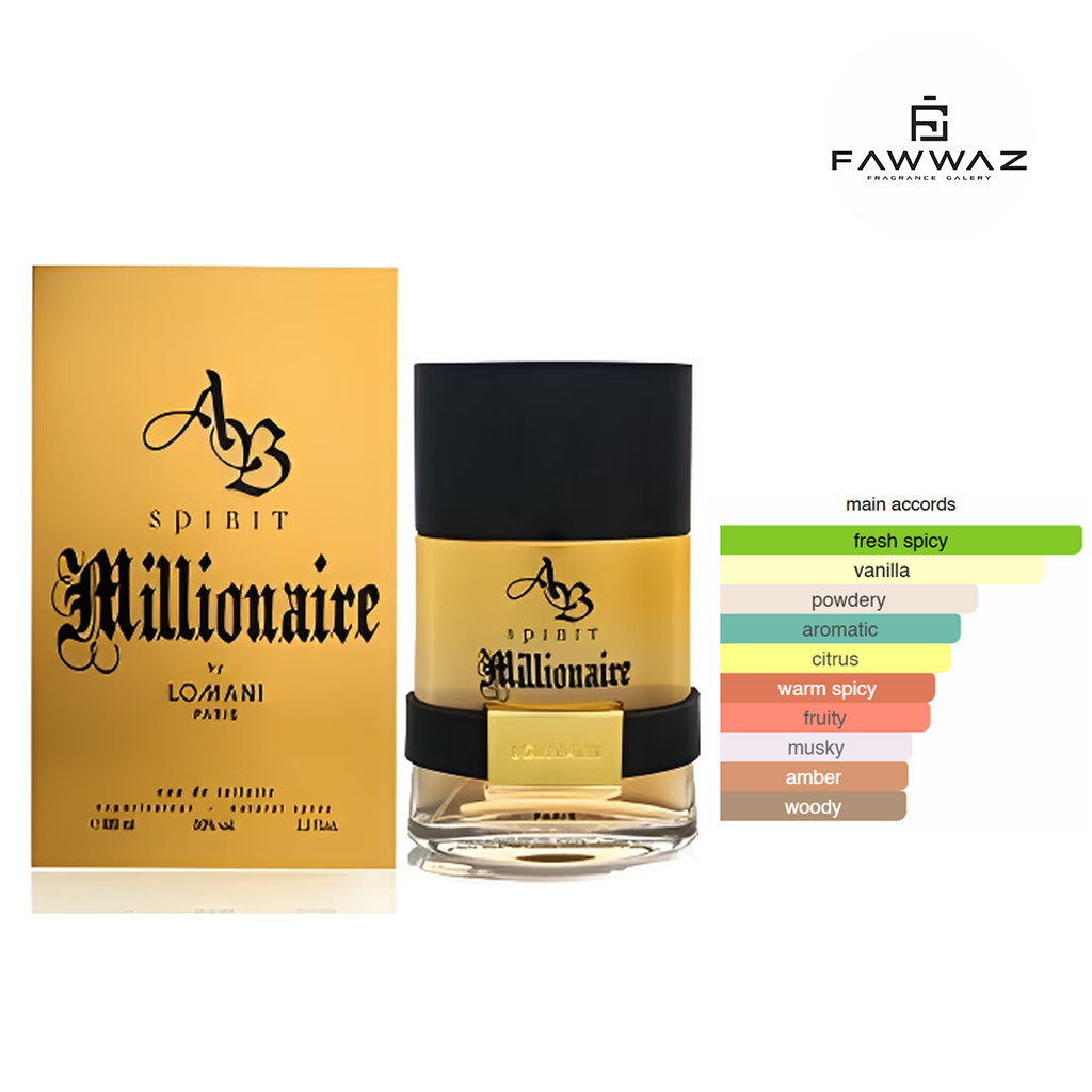 Lomani AB Spirit Millionaire Men adalah parfum maskulin untuk pria yang percaya diri, berkelas, dan berani tampil beda. Wangi elegannya memadukan kesegaran citrus, kehangatan rempah, dan sensualitas amber-woody yang memikat.