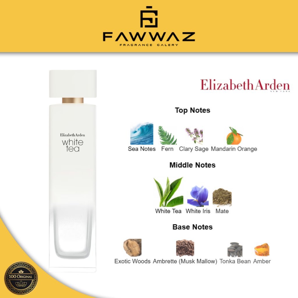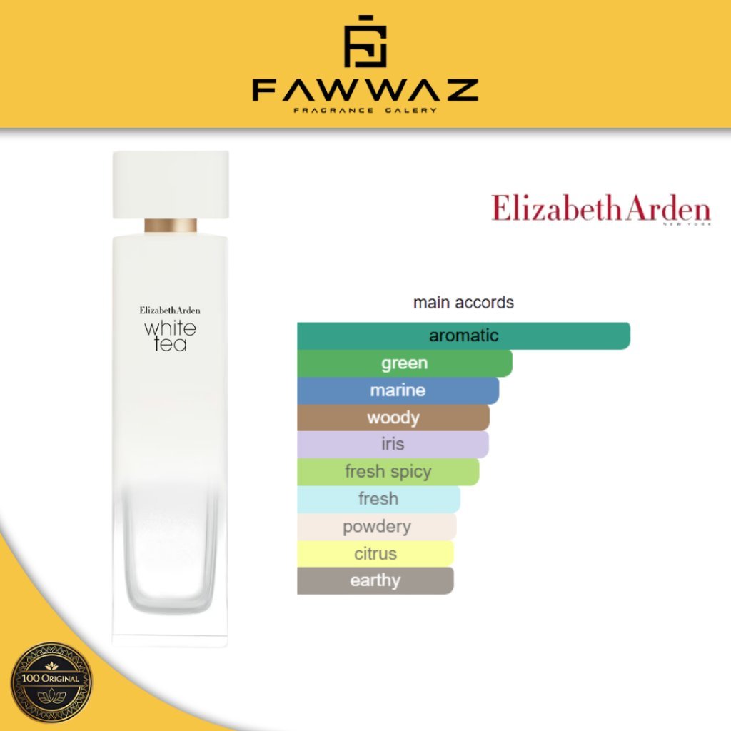 Ekstrak daun Camellia Sinensis (teh putih) — memberikan nuansa teh yang lembut. Elizabeth Arden
