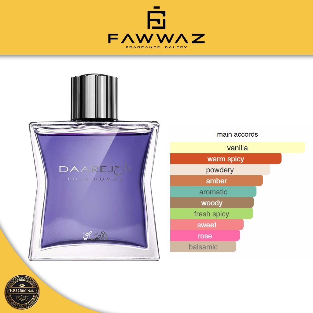 Salah satu parfum ikonik dari Rasasi, Daarej Pour Homme diciptakan untuk pria modern yang berani dan berkarakter kuat.