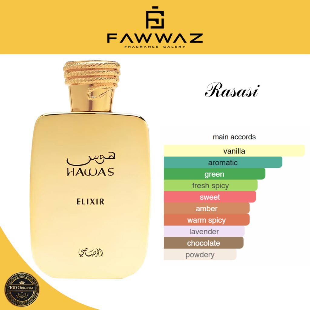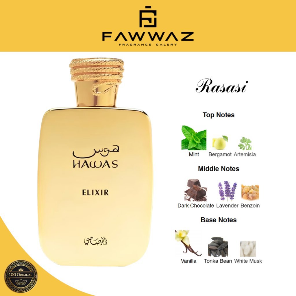 Rasasi Hawas Elixir adalah versi yang lebih intens, mewah, dan menggoda dari seri legendaris Rasasi Hawas.