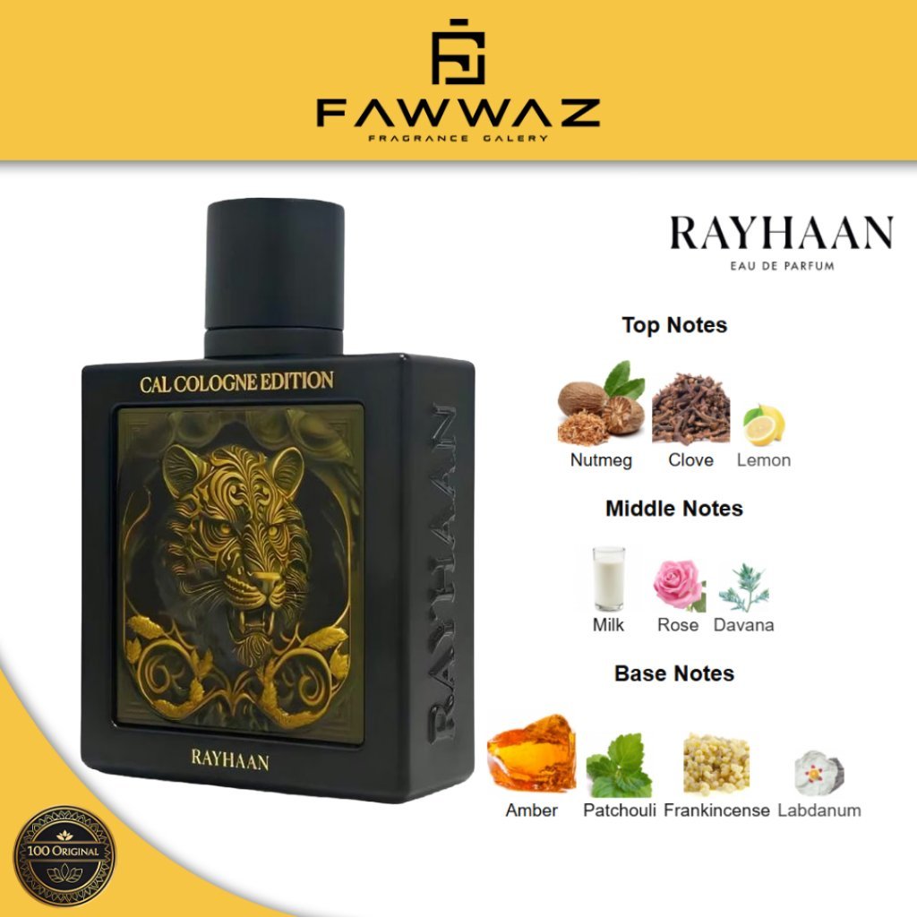 parfum pria dengan karakter fresh spicy – woody – aromatic yang memberikan aura maskulin, kuat, dan energik. Dibuat untuk pria yang menyukai aroma tegas namun tetap segar, Rayhaan Tiger menawarkan keseimbangan antara kesegaran citrus, bumbu spicy, dan kehangatan kayu.