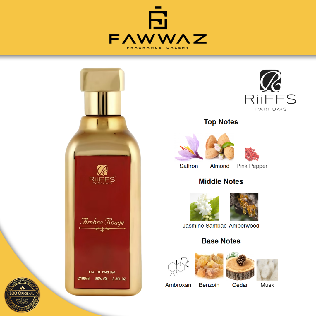 Ambre Rouge adalah parfum unisex dengan karakter hangat, manis, dan mewah. Perpaduan aroma amber, saffron, dan woody memberikan kesan elegan, bold, dan berkelas. Wanginya intens namun tetap smooth, sangat cocok untuk pecinta parfum berkarakter luxury dan modern.