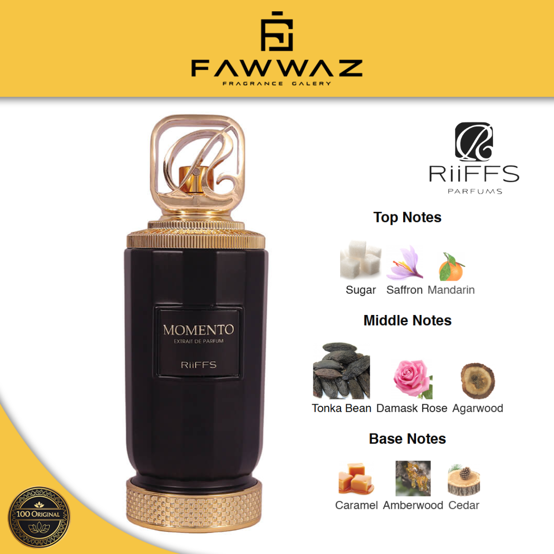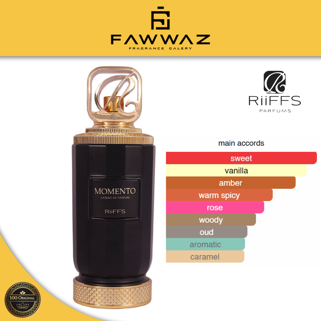 Riiffs Momento adalah parfum unisex dengan karakter hangat, elegan, dan modern. Aromanya memadukan sentuhan manis lembut dengan nuansa woody dan amber yang halus, menciptakan kesan intimate, classy, dan berkelas. Wanginya smooth, tidak menusuk, namun tetap terasa mewah dan berkarakter.