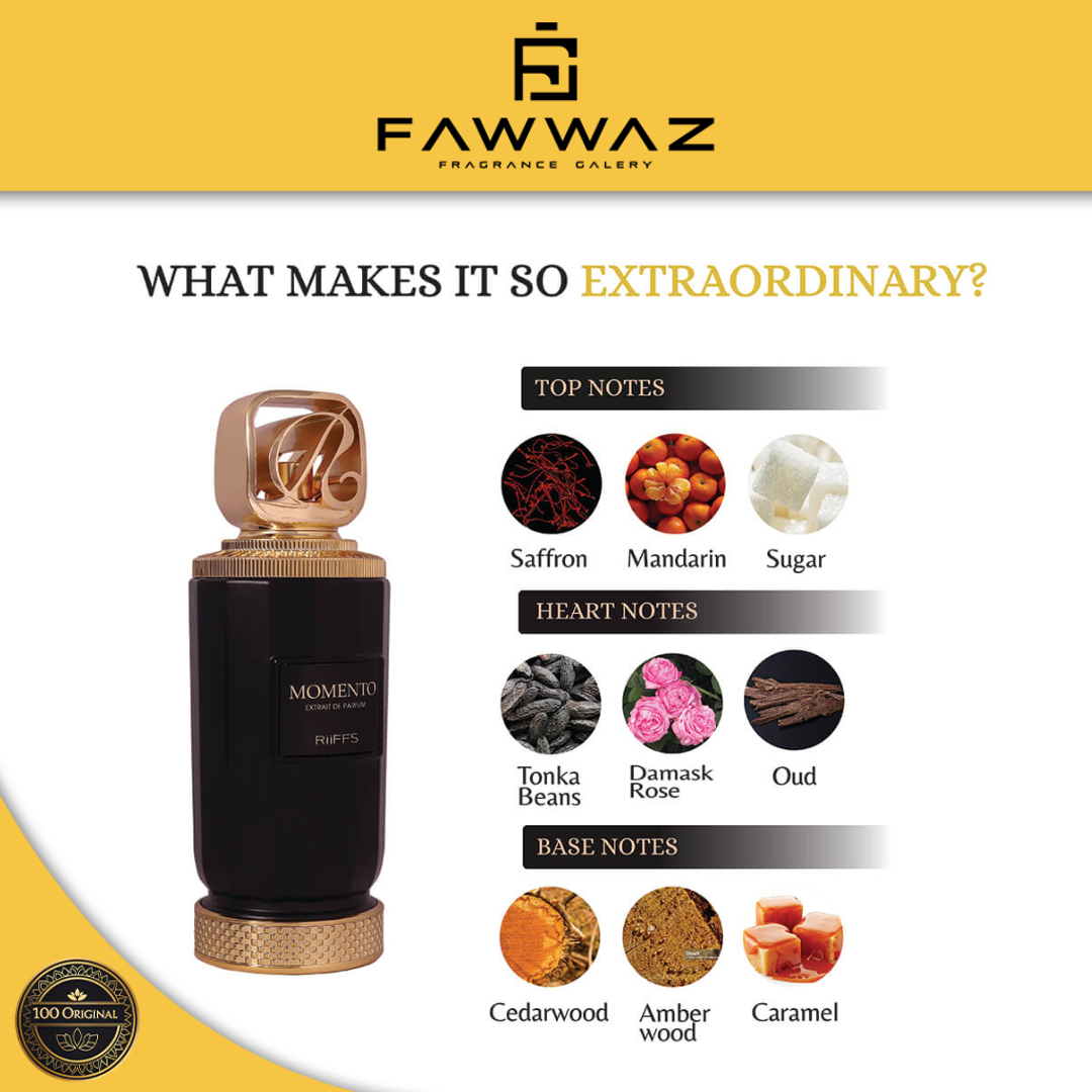 Dengan konsentrasi Extrait De Parfum, Riiffs Momento memiliki daya tahan sangat lama dengan aroma yang tetap smooth sepanjang pemakaian. Cocok digunakan untuk daily luxury, evening wear, maupun acara spesial.