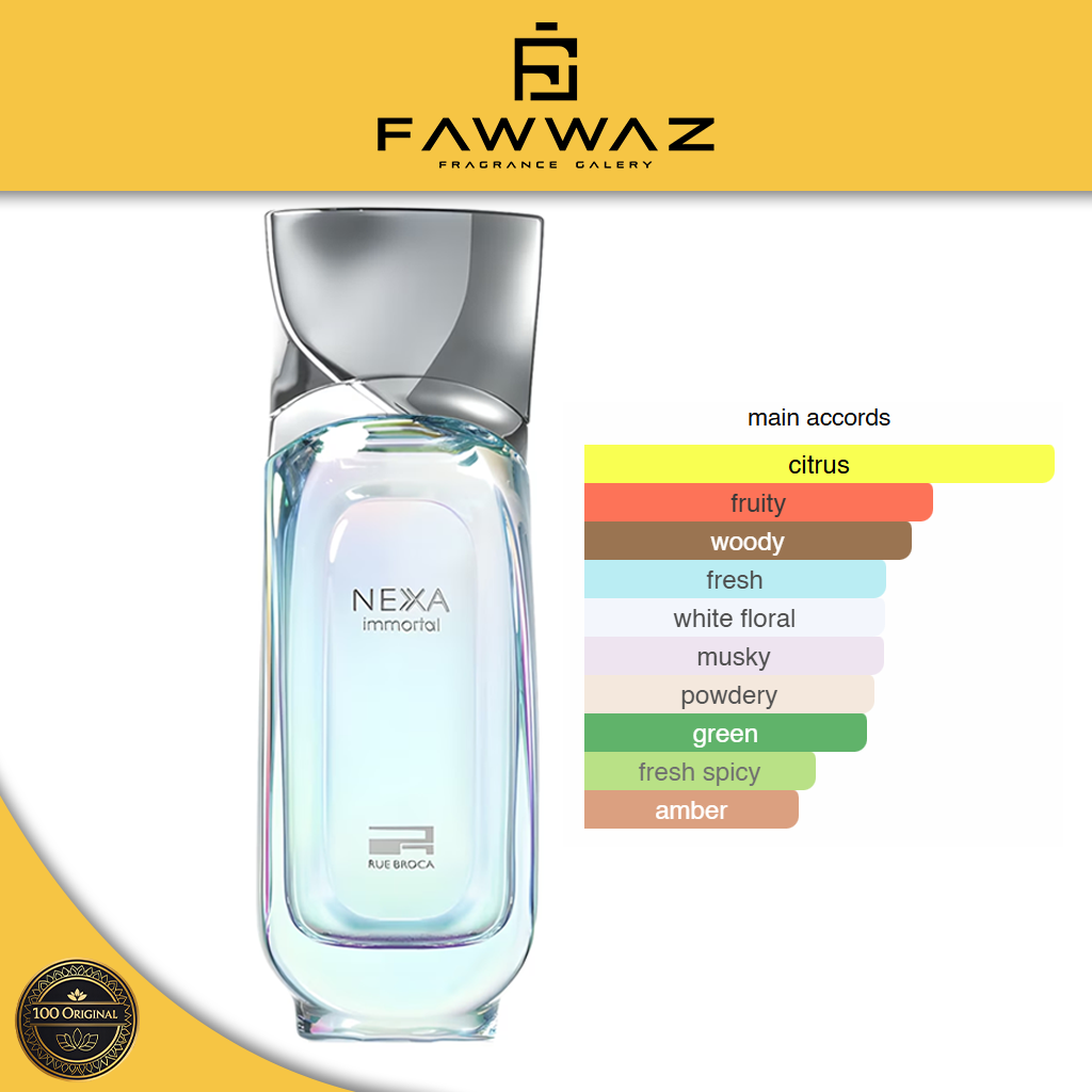 Didesain untuk pria ambisius dan berkarakter kuat, Nexa Immortal menghadirkan aroma aromatic woody amber yang memikat, dengan kesegaran citrus di awal dan kehangatan amber di akhir.
